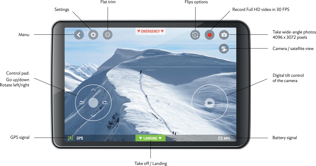 I am not going to go into much detail about the bebop drone controller because we have covered this several times before. The drone uses the same app, the FreeFlight 3 that all the other Parrot drones use. It is available on iOS, Android and Windows 8.1. If you want to take a more in depth look at the app interface, we have covered this in more detail in the Parrot AR Drone 2.0 review last year.
