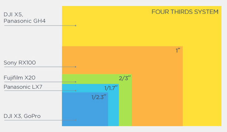 The Zenmuse X5 camera has the same Micro Four Thirds sensor that the Panasonic GH4 DSLR camera holds, allowing ISO ranges from 100-25600. When compared to the DJI Inspire 1 X3 camera, the sensor is also 8 times the size.Four thirds camera for dji inspire 1 pro