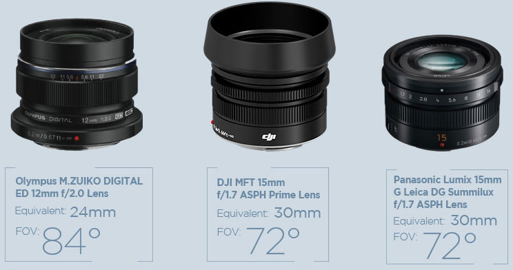 For the most professional aerial photographers, the interchangeable lens mount is also going to make a huge difference. The Zenmuse X5 allows you to choose your lens, getting it as close as possible to a flying DSLR. You are now no longer stuck with the same camera lens that the drone came with. The X5 is compatible with any Micro Four Thirds camera lens from other lens manufacturers, such as the ones below: