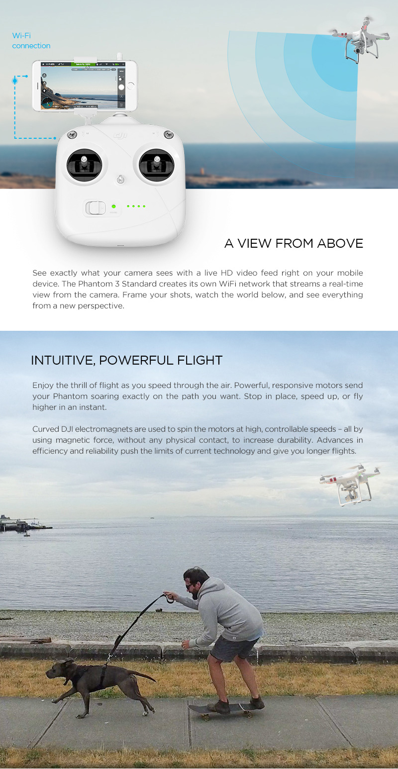 The DJI Phantom 3 Standard drone is the latest drone in the Phantom 3 series released by DJI and it is now one of our drones for sale available from the website. It is the best priced quadcopter out of the other two Phantom 3 Advanced and Professional versions.