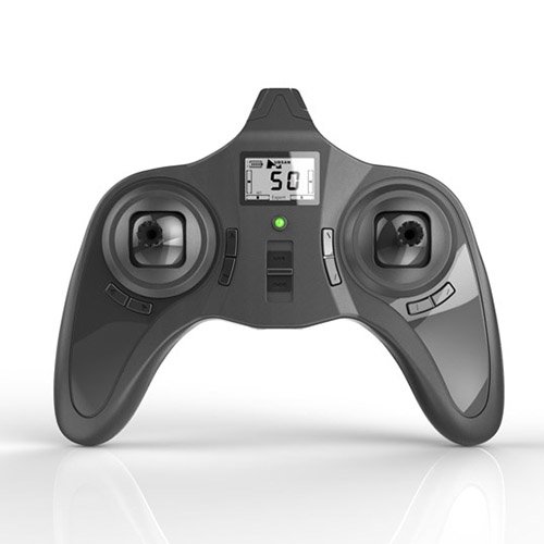 The drone is ready to fly out of the box and comes equipped with a battery controlled 2.4GHz radio controlled transmitter which controls a 6-axis gyroscope on the drone itself.