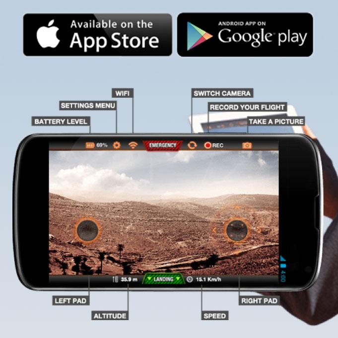 • Control this Parrot quadricopter drone with your smartphone or tablet running on iOS or Android – simply tilt and fly
