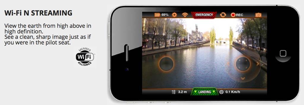 The Parrot 2.0 WiFi Quadricopter Drone is the ultimate flying device for amateurs looking t o get up in the air as soon as possible. This is controllable by a free to download iOS or Android app called AR. Freeflight. It uses the integrated gyroscope for flying the device.